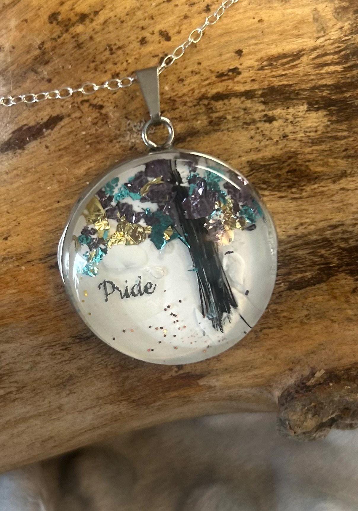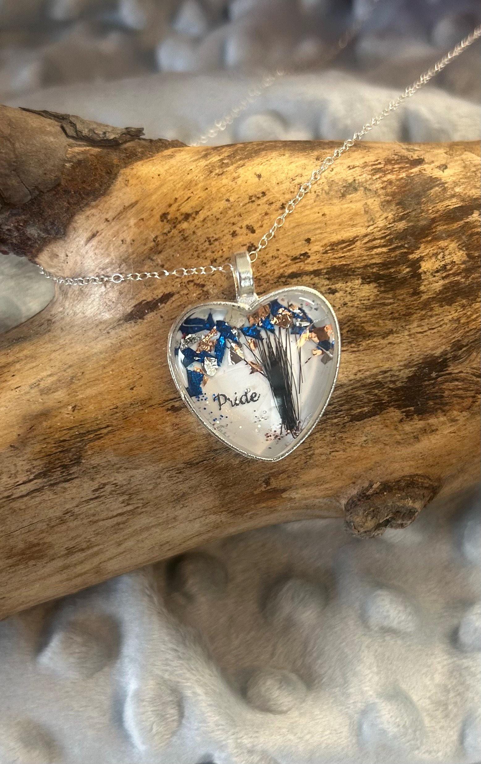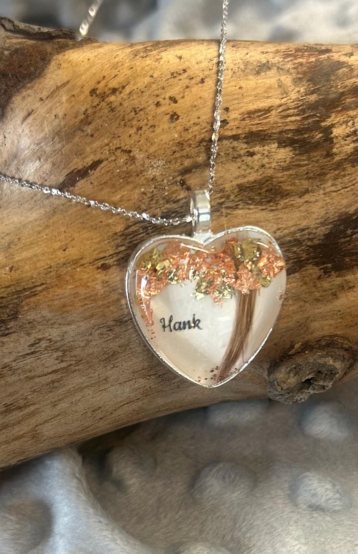 Beautiful Tree of Life designed from your pet's hair. This statement piece is available in your choice of a heart shape or round shape (approximately one inch in diameter) and your choice of two gold leaf foil colors. Included is a 16-inch sterling silver chain. If you need an 18-inch chain, just let me know!